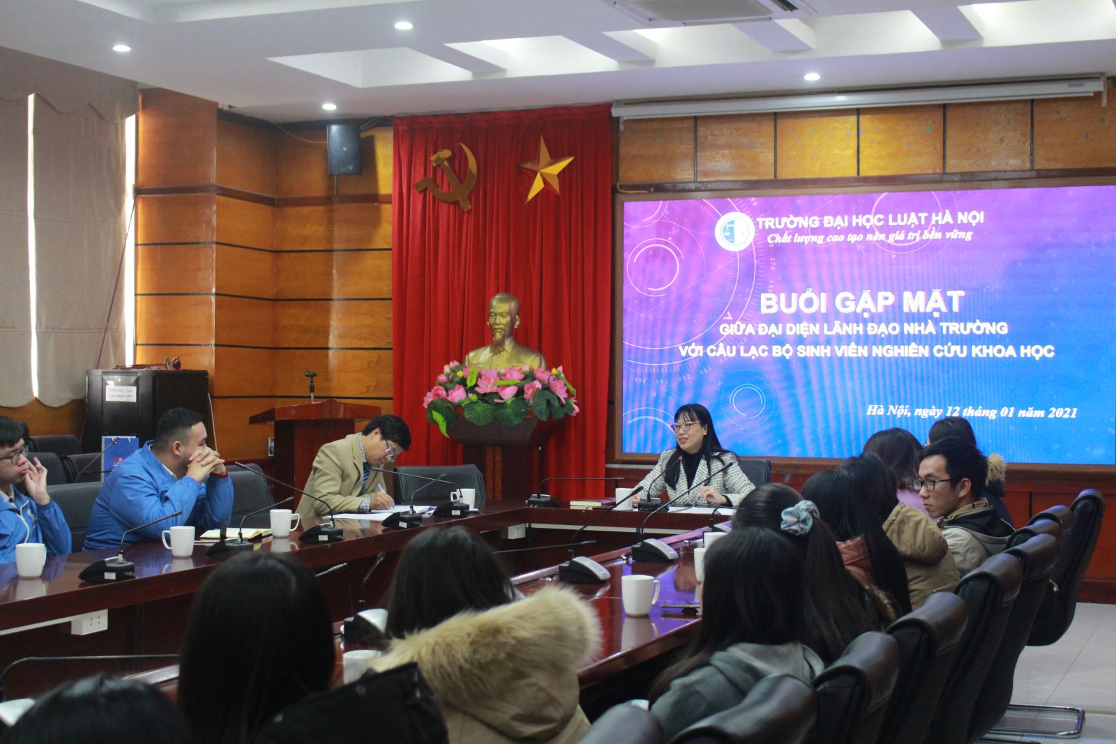 Sáng ngày 12 tháng 01 năm 2021, Phó Hiệu trưởng Trường Đại học Luật Hà Nội, PGS,TS.Vũ Thị Lan Anh đã có buổi gặp mặt với Câu lạc bộ sinh viên nghiên cứu khoa học để giao lưu, định hướng phát triển câu lạc bộ trong thời gian tới.